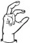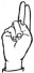 На ћирилици написано ТЕОДОР БУЗГАНОВИЋ састоји се из 16 слова [?]. Исписано ћириличном једноручном азбуком за глувонеме: